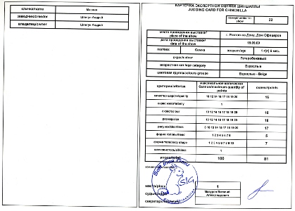 И хотя на выставке было представлено всего 36 шиншилл от 13 заводчиков, мы все же уверены в дальнейшем развитии шиншилловодства в нашем городе. Начало положено!